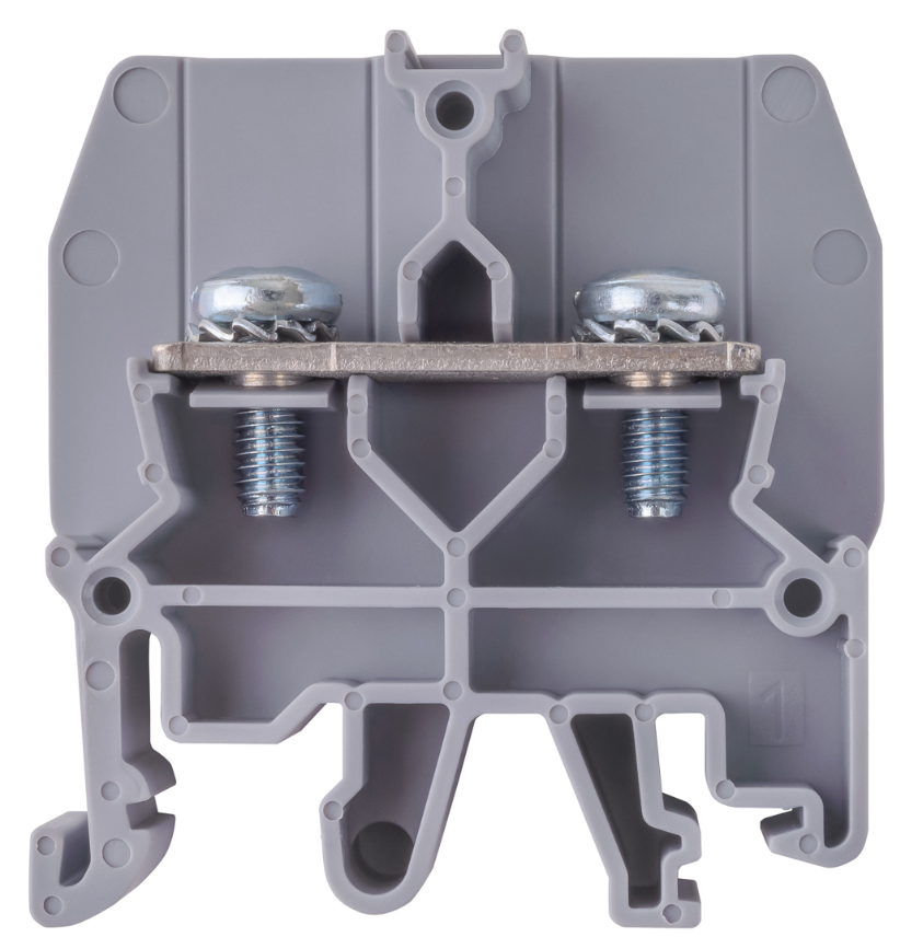 Cuando se aprieta el tornillo, la presión resultante promueve una deformación en el terminal que a su vez traba el tornillo para que no se suelte. Este sistema asegura la calidad final de conexión con mínimas perdidas eléctricas.