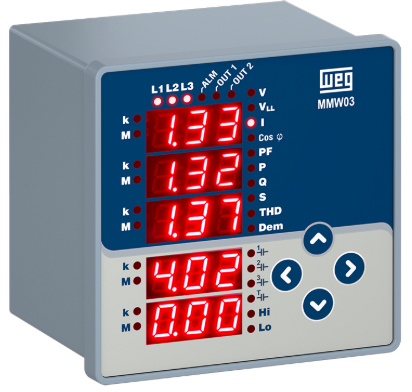 El PFW03 es un equipo de automatización destinado al monitoreo permanente de la potencia reactiva de la instalación y al control del factor de potencia. Este control en el PFW es hecho a través de la conexión y desconexión de las etapas de los condensadores. De esta forma, el Controlador Automático del Factor de Potencia capacita al sistema de distribución de potencia para operar con la máxima eficiencia, a través de la reducción de la potencia reactiva. Además de eso, informa parámetros eléctricos tales como: corriente, tensión, potencia, energía, demandas y valores máximos y mínimos.