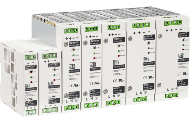 La línea de fuentes de alimentación conmutadas monofásicas proporciona voltaje de salida de 24 V DC y potencias de 15 a 240 W.