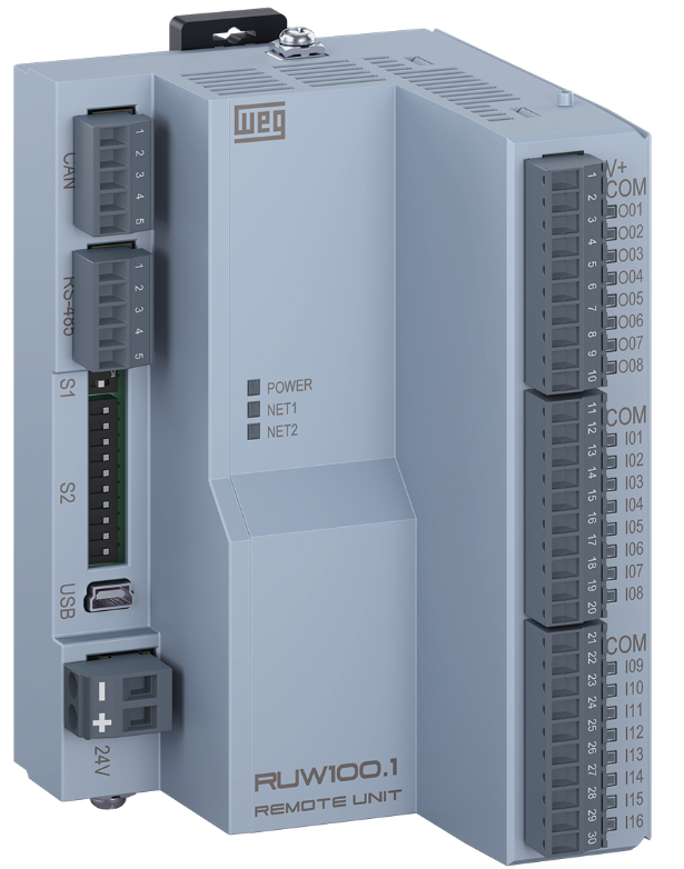 La línea de unidades remotas RUW100 permite la expansión de entradas y salidas digitales, analógicas, termopar, Pt-100, Pt-1000,