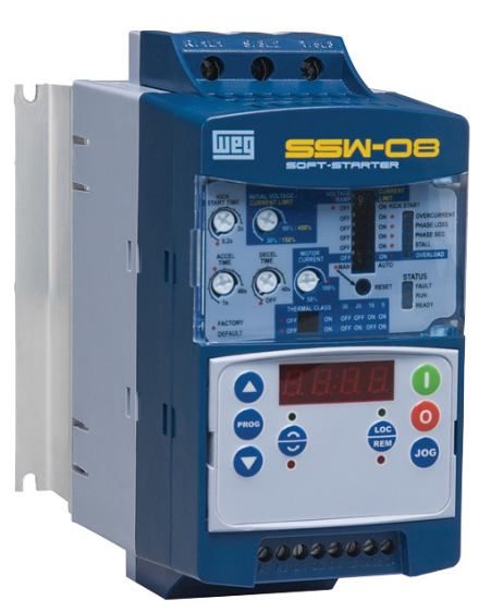 Los Arrancadores Suaves WEG - SSW-08 optimizan las secuencias de arranque y de parada, aumentan la productividad, permiten ahorro de energía / mantenimiento y protegen los motores de inducción trifásicos.
