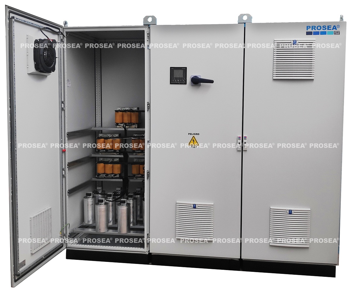 El banco de capacitores WEG se puede equipar con varias opciones, tales como reactores para trabajar en redes contaminadas por armónicas, filtros antipolvos, ventiladores interruptores y luz de cortesía.